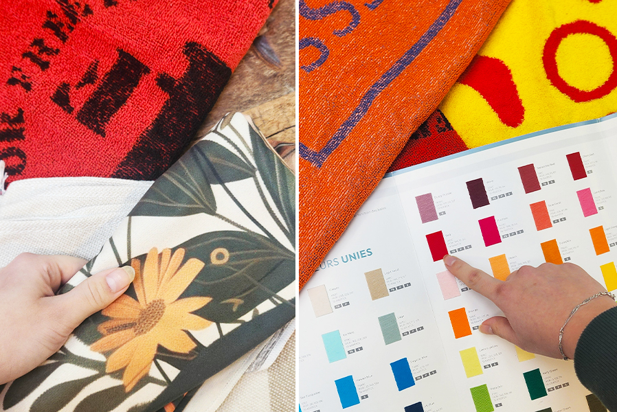 Entdecken Sie unsere Kollektion bedruckter Handtücher und Badetücher mit Logo.