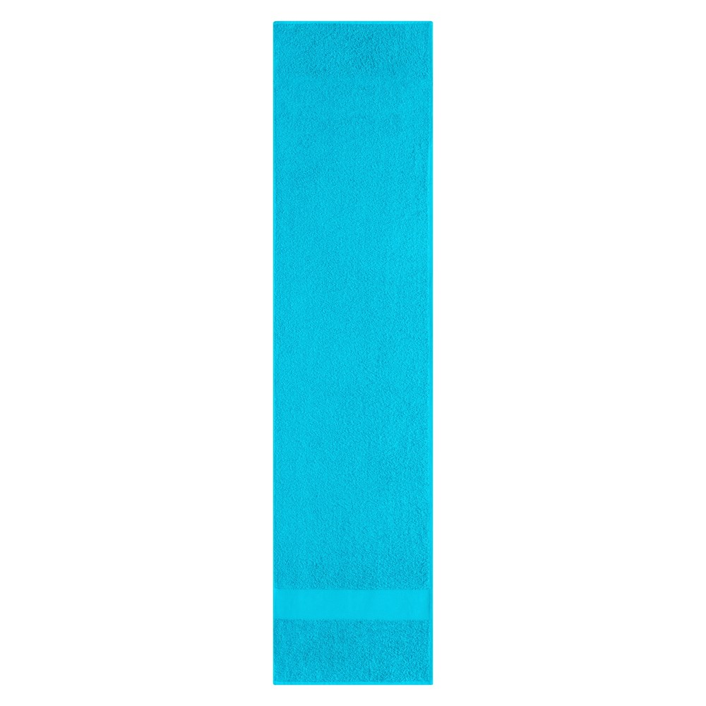 Afmeting: 130×30 cm (extra lang en smal). Materiaal: ringgesponnen katoen. Gewicht: 450 gr/m². Afwerking: één band van 4 cm hoog. Eigenschappen: zacht, goed absorberend en geschikt voor frequent gebruik. Kleuren: Wit, Zwart, Donkergrijs, Navy, Rood, Grijs, Kobaltblauw, Oranje, Flessengroen, Geel, Groen, Lichtblauw, Paars, Petrol, Roze.